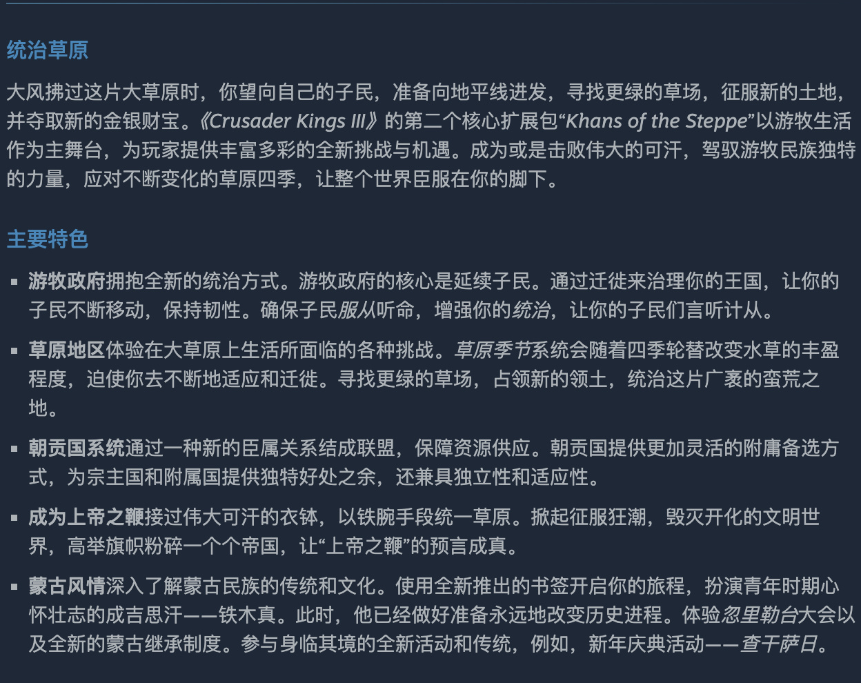 风味包则是十字军之王中某个区域的特殊内容,算得上重要,但不影响根本机制。