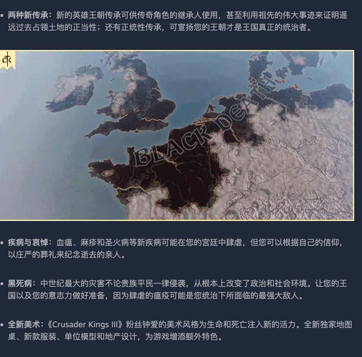 p社在这个dlc中充分展现了他们“三天不打,上房揭瓦”的问题,前几个dlc风评尚可就开始给玩家上眼药了,鸡肋的传奇系统,只对玩家有效的瘟疫系统,反正我玩ck只敢开最低档的瘟疫,否则这东西会恶心死人。
