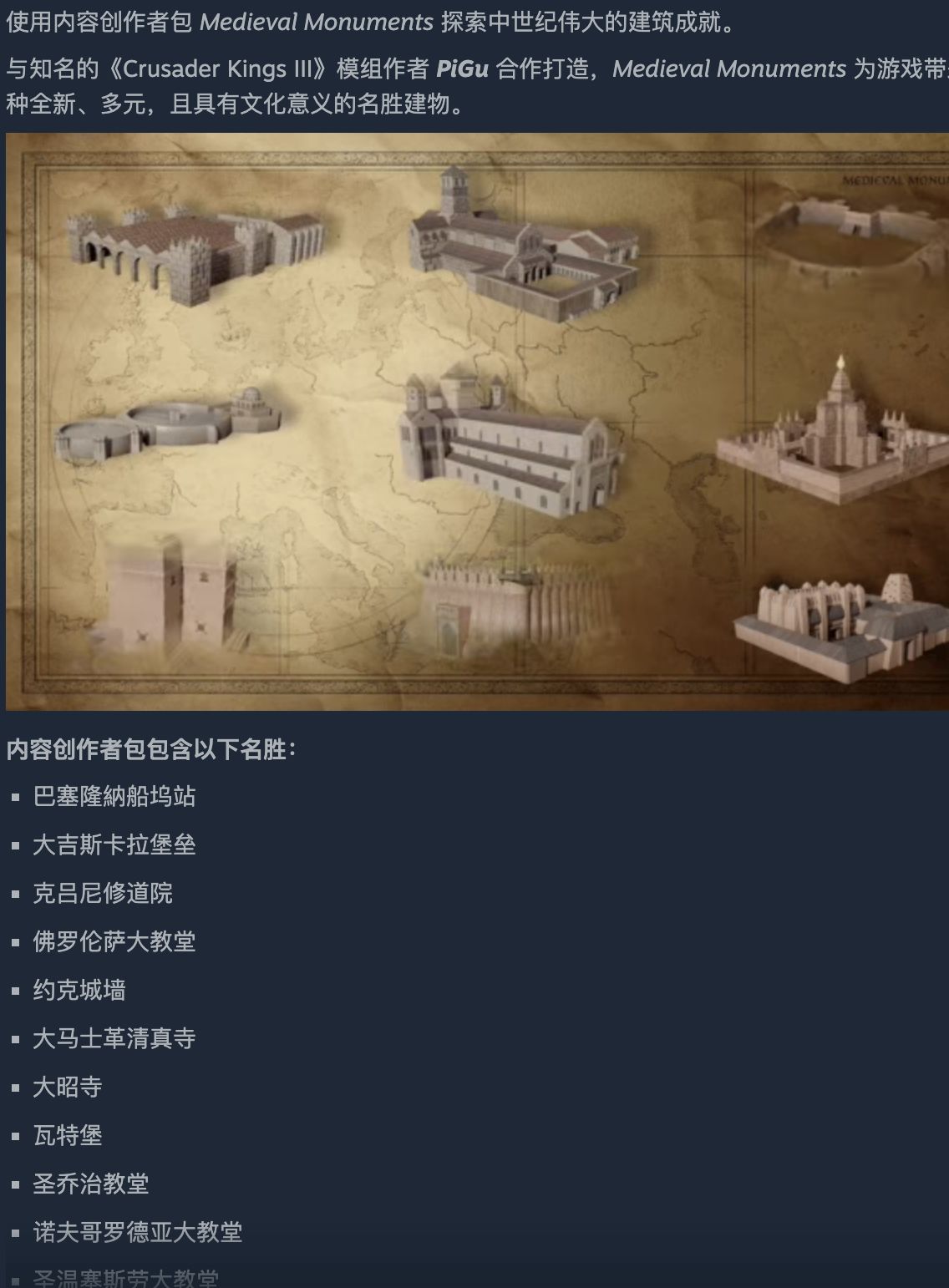 提供一些伟大建筑,本质上是诏安mod组做成的,除非人傻钱多的(比如我当时就是吃饱的程的买了),否则不建议。