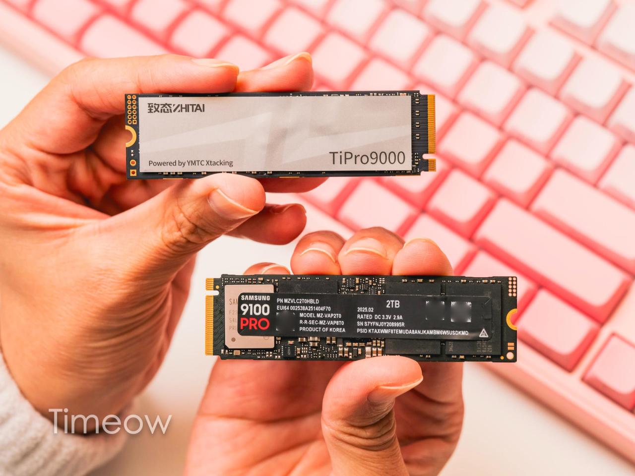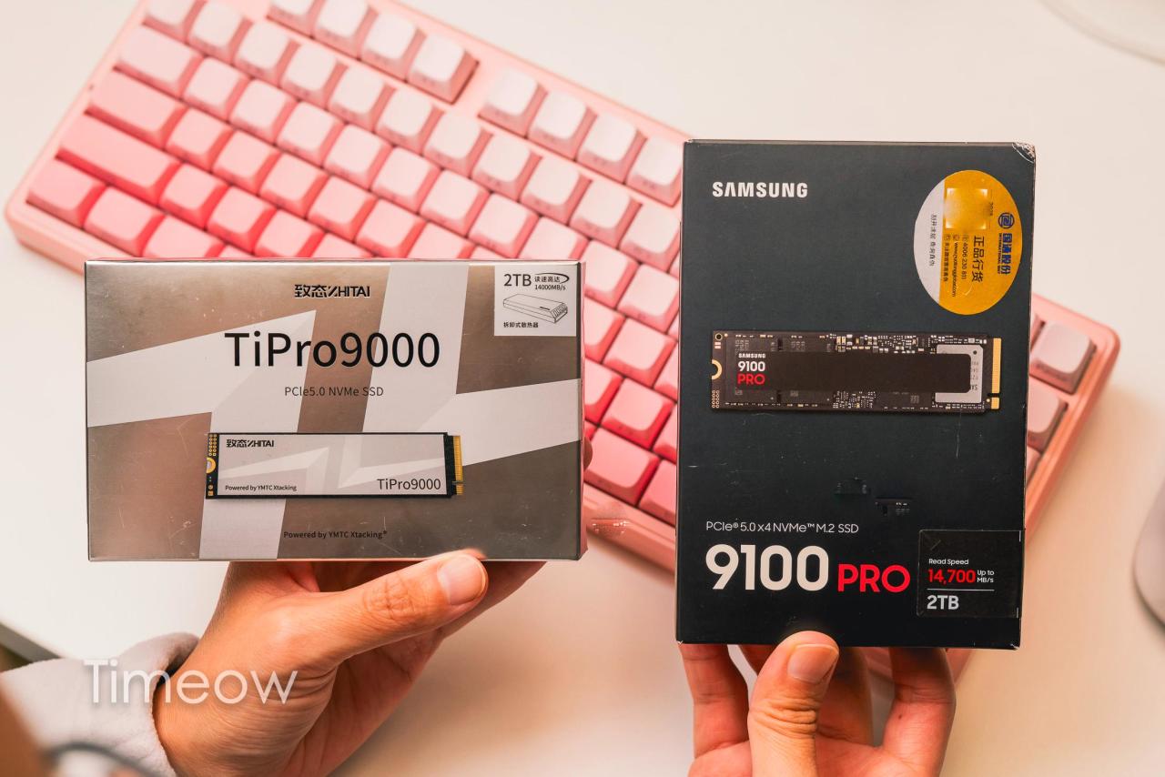 今年是PCIe 5.0固態硬盤的爆發之年,目前市場上可選的產品其實挺多了,但熱門且用了原廠顆粒的PCIe 5.0固態硬盤產品數量並不多,兩隻手就能數得過來。我本人手裏有致態TiPro9000和三星9100PRO這兩款熱門原廠顆粒的Gen5 SSD產品,相信也是很多玩家選購時糾結的兩個選項,以下就是我的分享,簡單做個小對比,希望對你的選購有幫助。