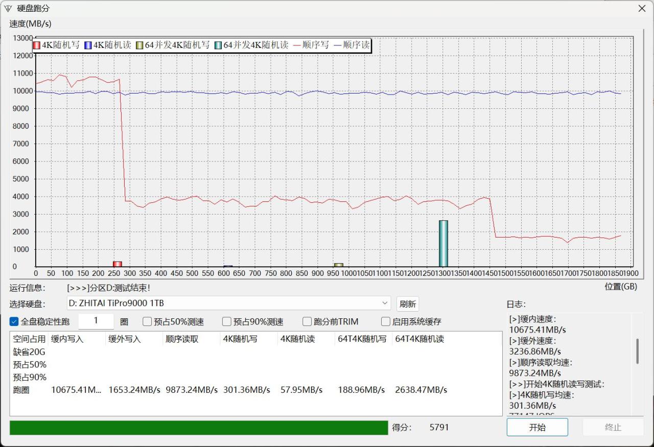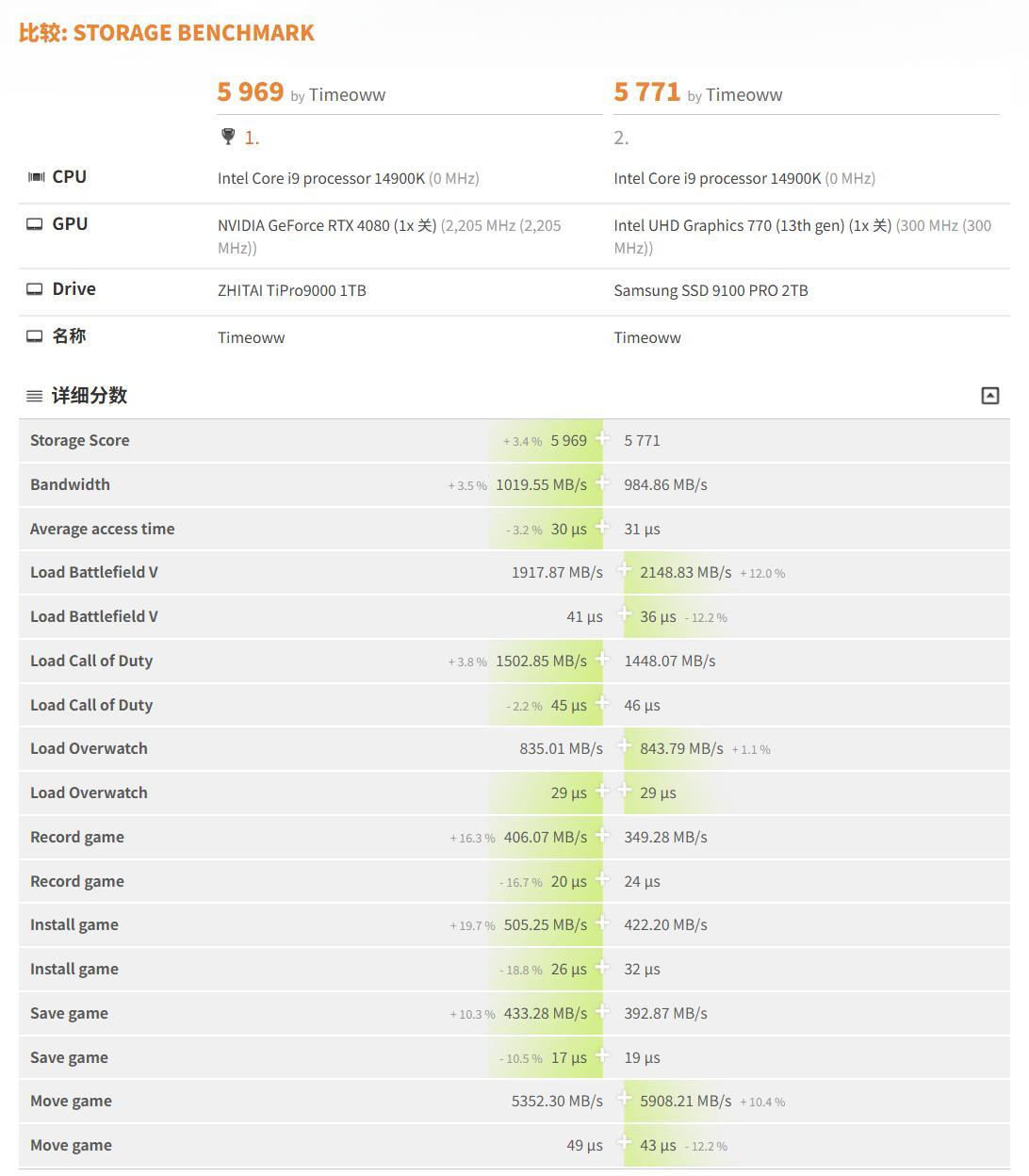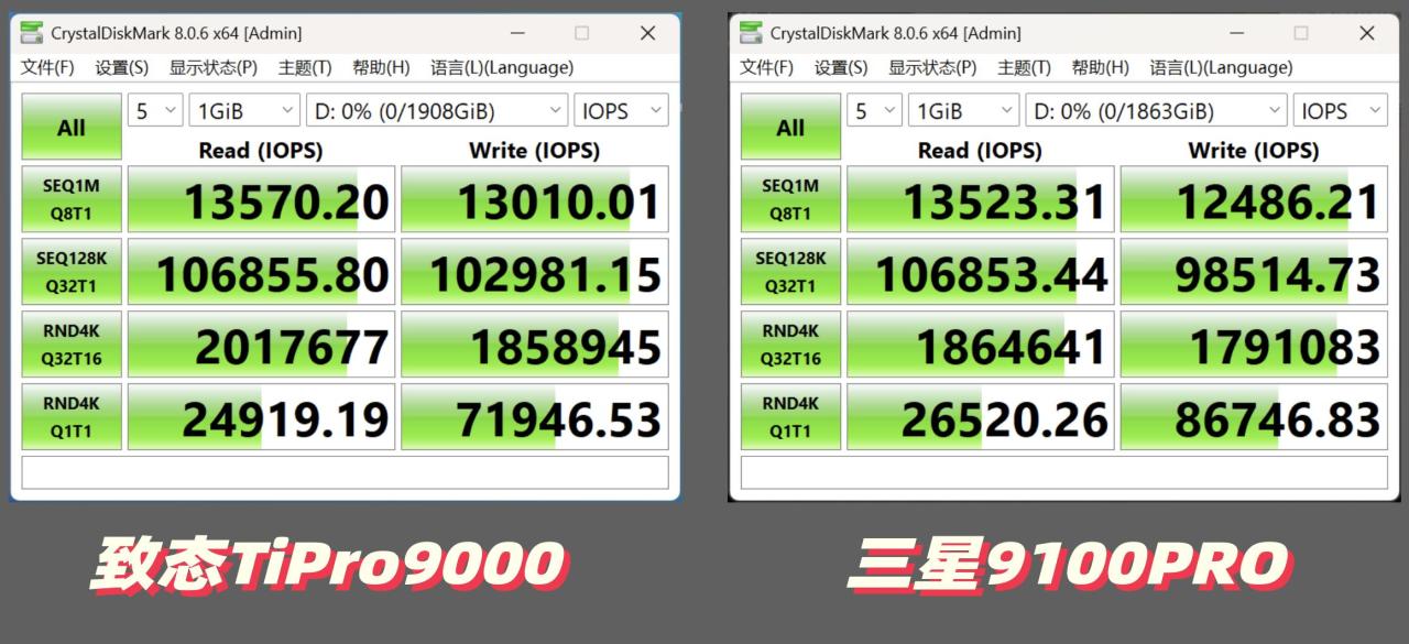 致態TiPro9000得分5969;三星9100PRO得分5771。