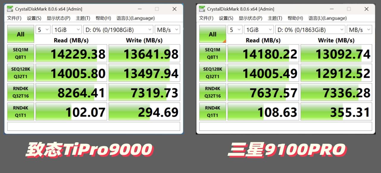 前幾天有朋友問我,致態TiPro9000和三星9100PRO該選哪一款,所以這次趁着雙11,我就拿我手上這兩根固態簡單做個小對比,希望可以幫到雙11正在持幣觀望的朋友們。