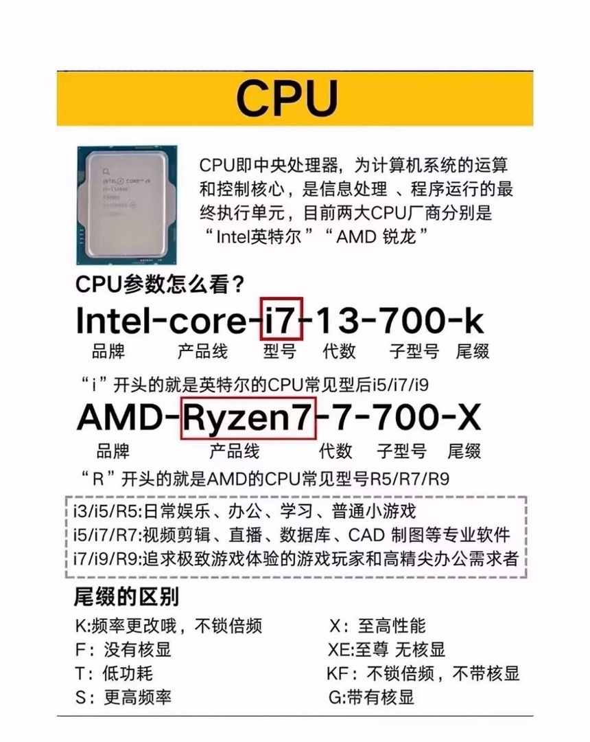 • 处理器(CPU):市场上主要有英特尔和AMD两个品牌。英特尔酷睿系列较为常见,i3适合日常办公,i5能满足大多数日常需求及轻度游戏,i7性能更强,适合运行大型软件和玩大型游戏等。AMD的R5、R7系列性价比高,在多线程处理上表现较好。选择时可关注主频,通常主频越高性能越好,但不是唯一标准,还可参考核心数、线程数。
