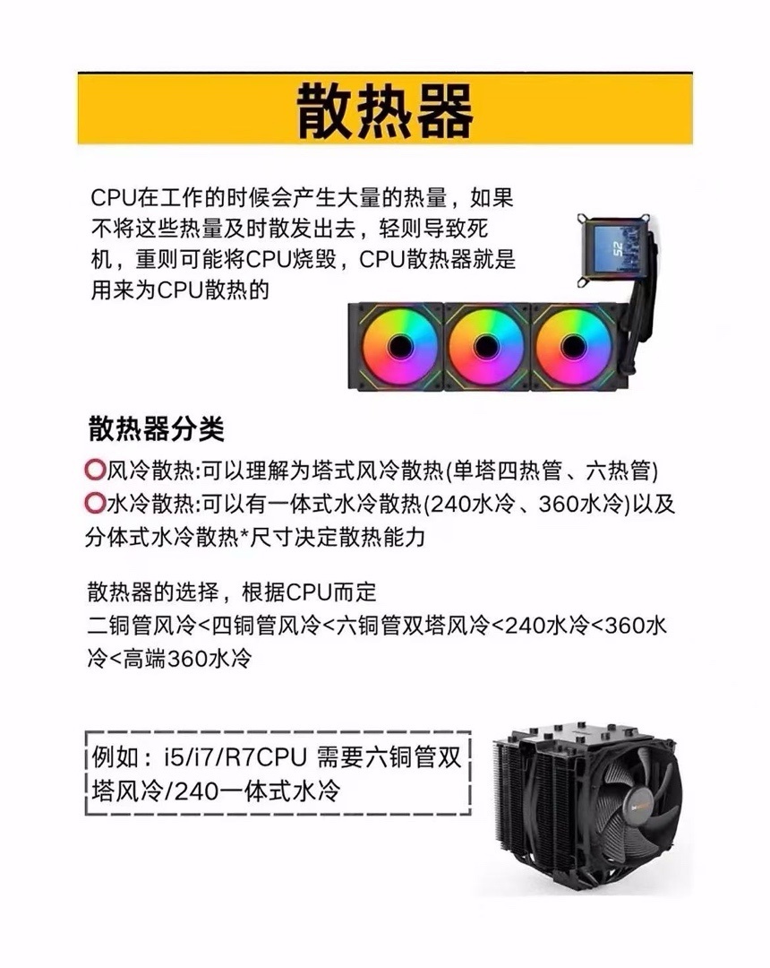 • 散热系统:一般情况下,盒装CPU自带的散热器能满足日常使用。若CPU性能较高或有超频需求,可考虑额外购买风冷散热器或水冷散热器。风冷散热器价格便宜、安装简单;水冷散热器散热效果好,但价格较高、安装复杂。