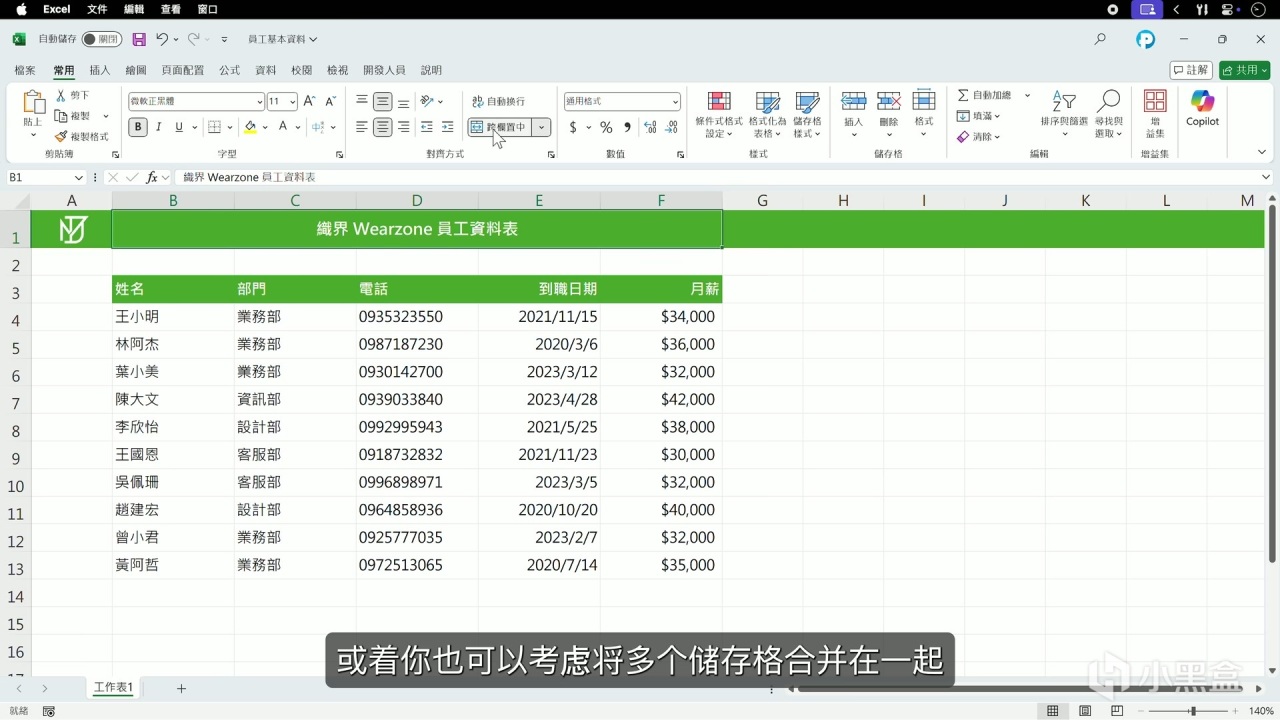 • 合併單元格 (Merge & Center):將多個單元格合併成一個,實現標題的跨列效果,並可以靈活調整對齊和縮進。