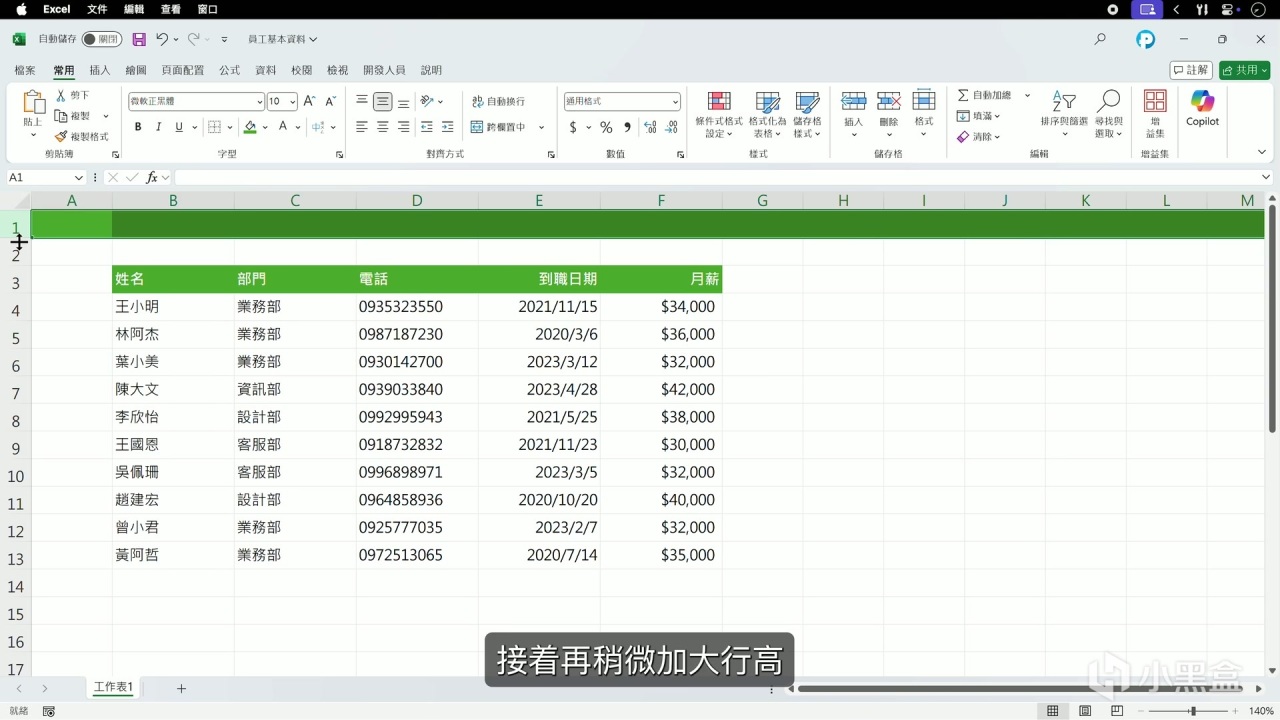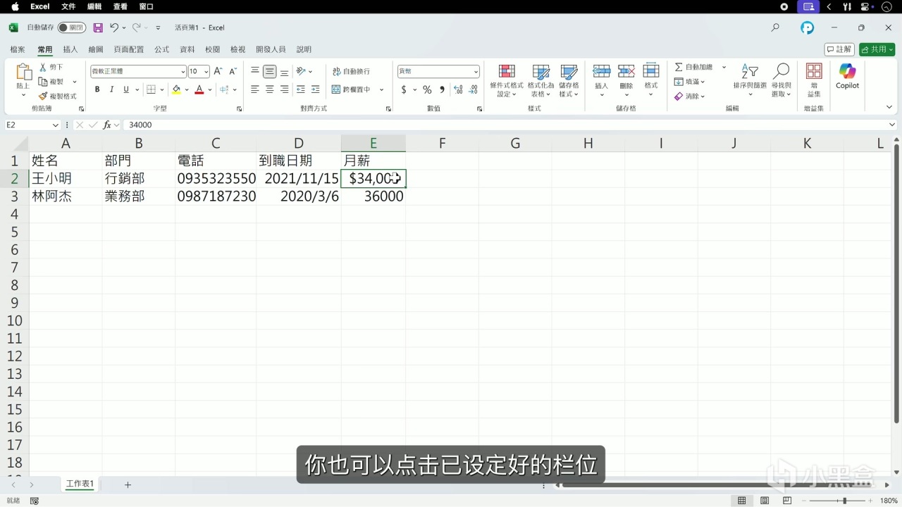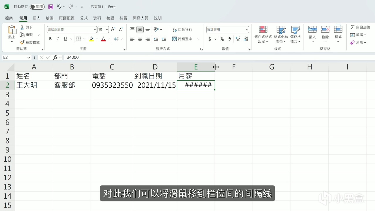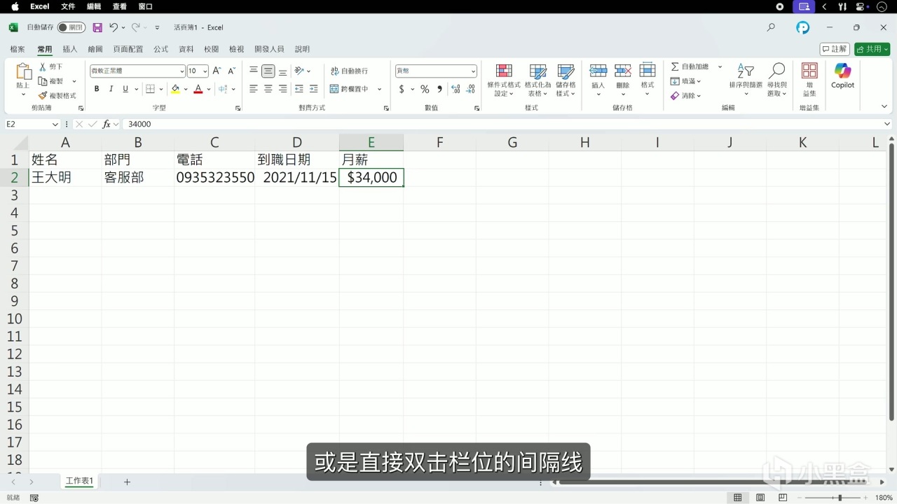 自動調整:雙擊列標題的分割線,Excel 會自動將列寬調整到最合適的大小。
