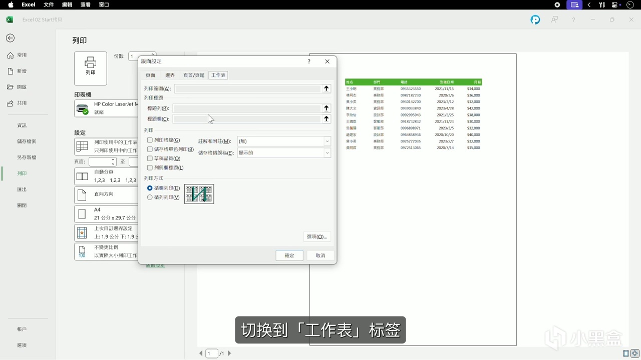 • 打開 頁面佈局 (Page Layout) -> 頁面設置 (Page Setup) 對話框。