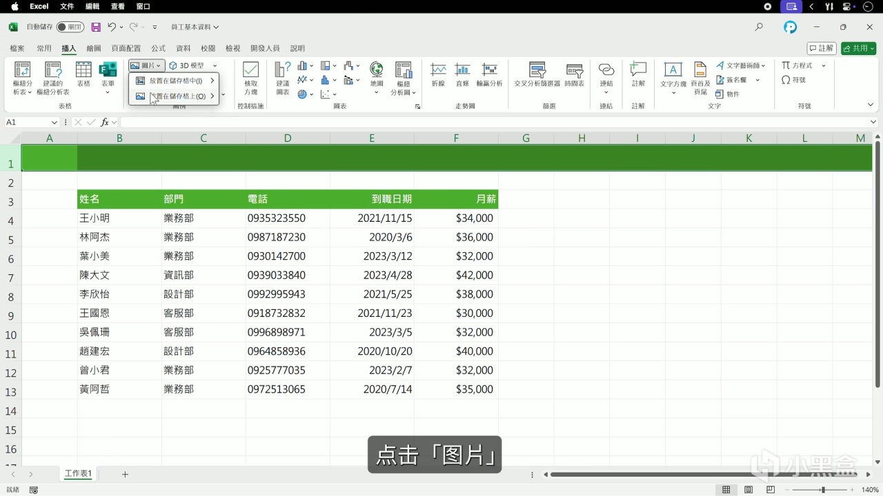 • 創建表格:以創建公司員工基本資料表爲例,表頭包含“姓名”、“部門”、“手機號碼”等。