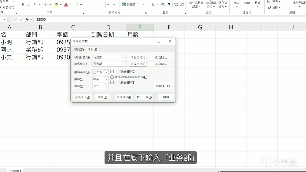 在“取代爲”欄輸入新文本(如“業務部”)。