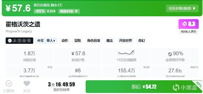 大家好,秋促已經結束一段時間了,冬促還有兩個月,擔心遊戲買貴或遊戲荒的朋友,今天蝦堡給大家盤點這期間熱門遊戲新史低~