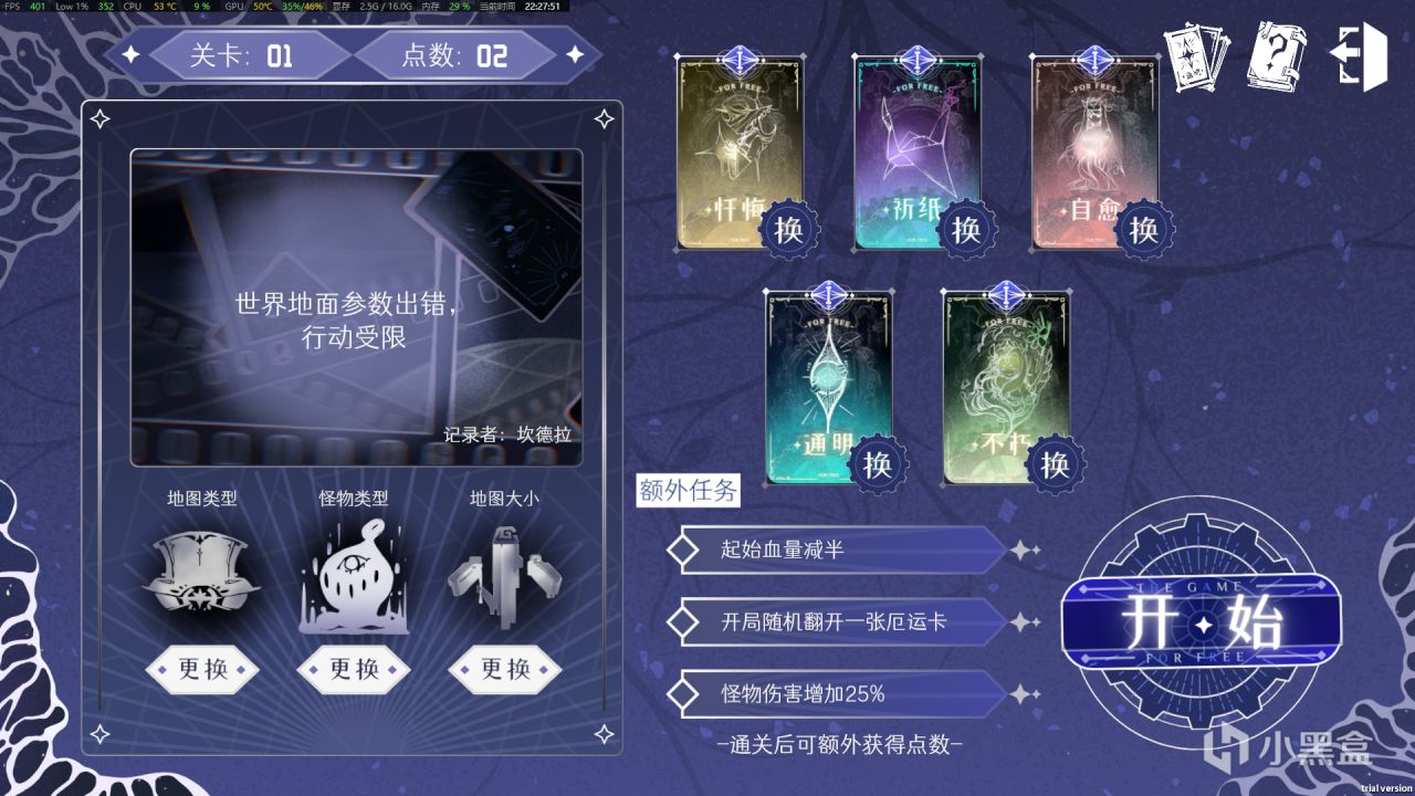 主線劇情體驗以後,我們還可以體驗無限制翻牌模式。在這個模式正常通關會獲得點球,我們可以選擇各種限制來獲得額外的點數。而通過點數我們可以對地圖、怪物和地圖大小進行更換。然後進行不斷的挑戰,各種有趣的地形,有阻隔的山型地勢,有充滿毒霧的毒區域等。