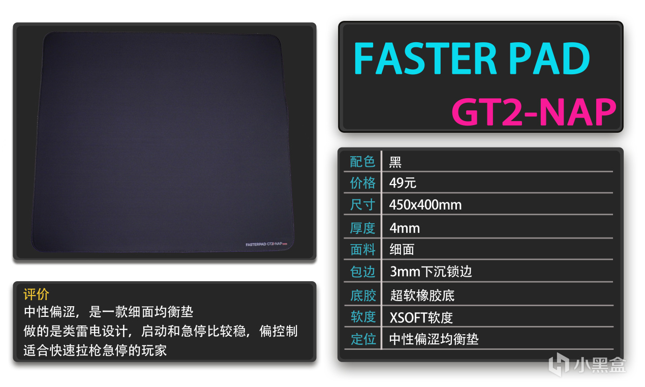 面料方面,黑色那款是粗麪,啓動速度和滑動速度都比較快,屬於速度墊。細面這款是中性偏滑,手感比較光滑,有一定控制力。表面做了雙層編織布面,擁有特別強大的防水防汗能力,對手汗玩家非常友好,也適合潮溼環境使用。