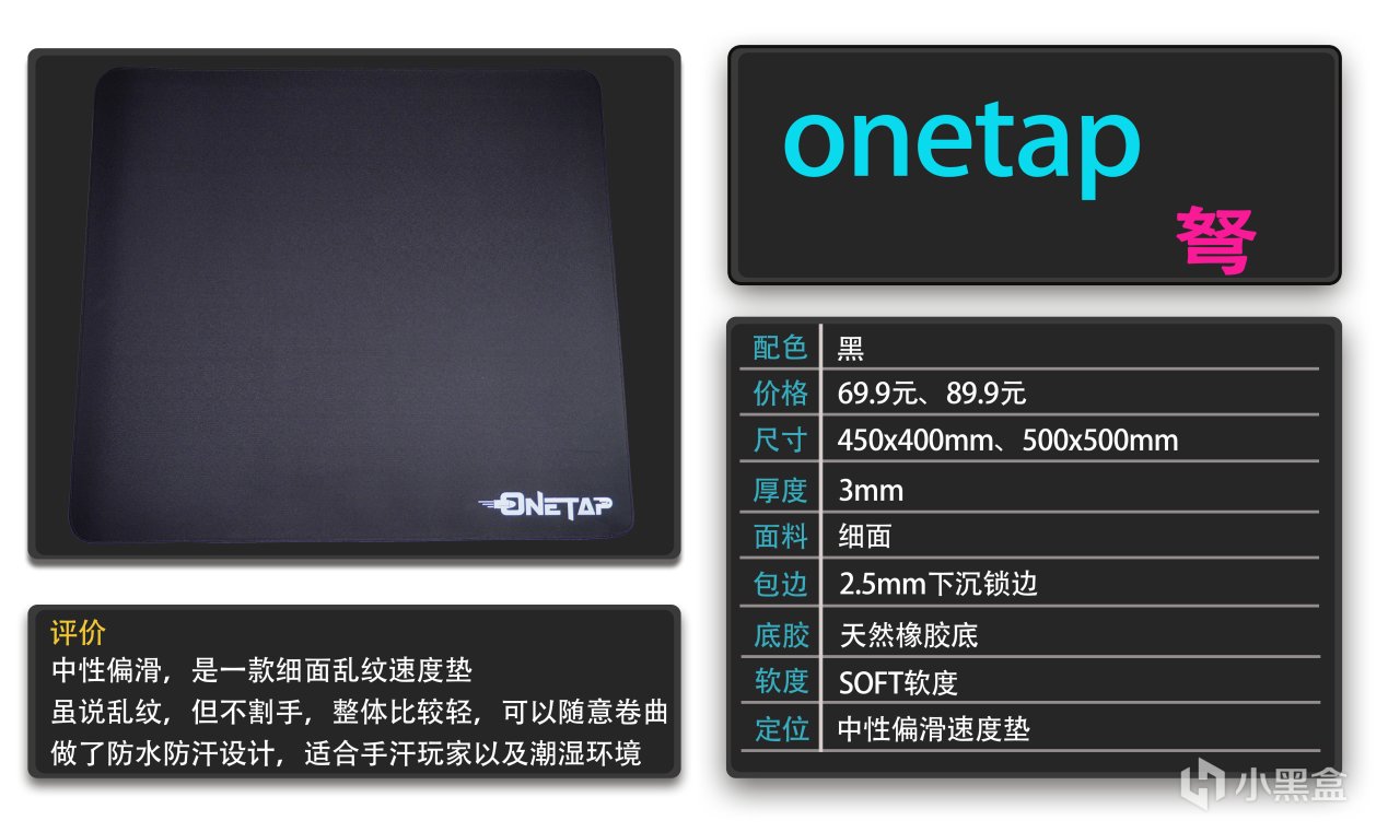 款式方面:這是onetap最近出的一款鼠標墊,只有黑色這一種款色。墊子小款是45*40的尺寸,還有一個更大的50*50的尺寸,個人建議購買45*40尺寸的已經非常夠用了。