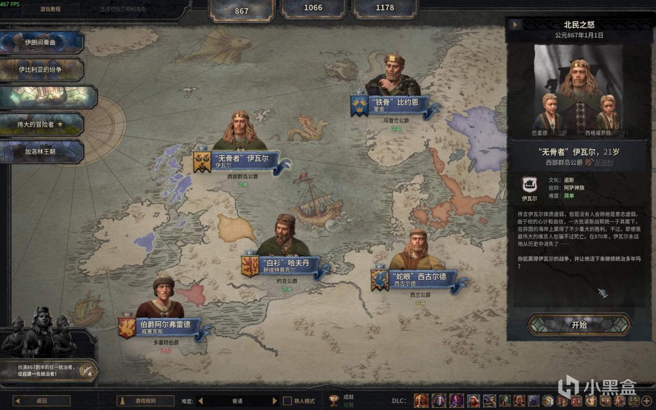 开局你会看到你现在打着两场战役,一场是跟伊瓦尔的兄弟哈夫丹一起打杀父仇人诺森布里亚的国王埃拉,一场是跟东盎格利亚公爵,不过这都不重要。。