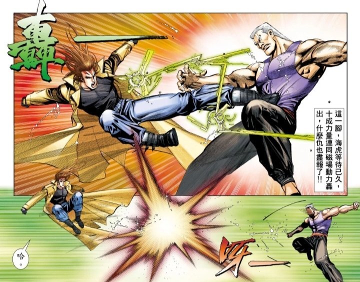 這個時期的海虎雖然不是天道的對手,但還是用一發海虎爆破腿擊退天道,成功脫身。