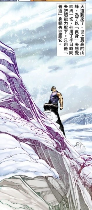 聽從師父的話,天道來到喜馬拉雅山,憑藉這自己“普通”的肉體登山(指不靠磁場力量、不靠裝備,穿着老北京布靴還有強者背心登山……)