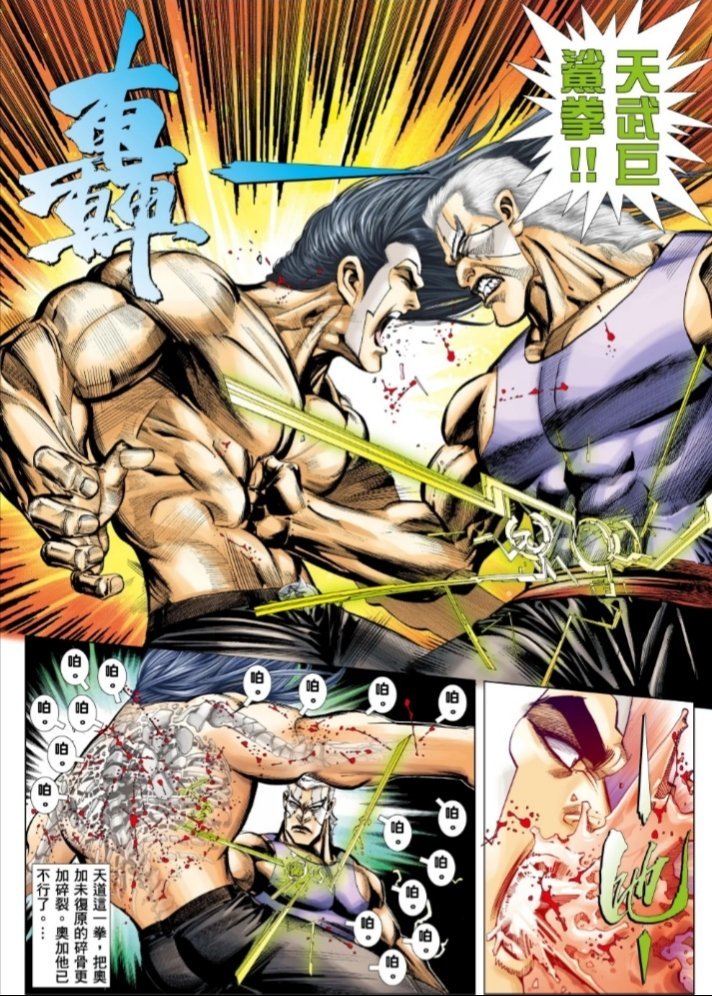 轟下奧加後,面對前來增援的首男、病毒,天道甚至沒有用天武巨鯊拳就將首男腰斬、病毒洞穿。