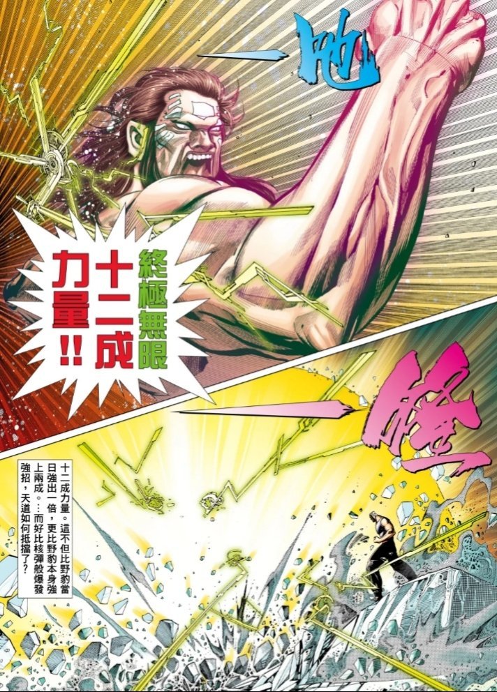 野豹甦醒後施展出自己的絕招終極無限,無數拳勁在同一時間殺向天道一行人,天道也上前與秦虹比拼。