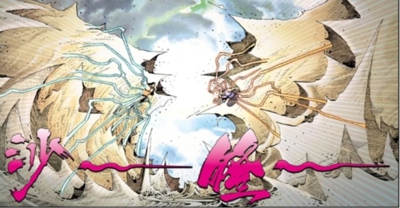不知道戰了多久,天道、奧加再次分開,許久的戰鬥已經讓兩人弱下,天道只剩下最後三擊二十五匹天武巨鯊拳,奧加則只剩下最後兩擊殺鯨霸拳,最後的勝負也會在下一回合分出。