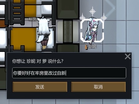 先點選一個殖民者,讓她去跟囚犯“交談”(看,小人路徑本來要走了,我點發送後,她進到牢房裏和囚犯說話了)。