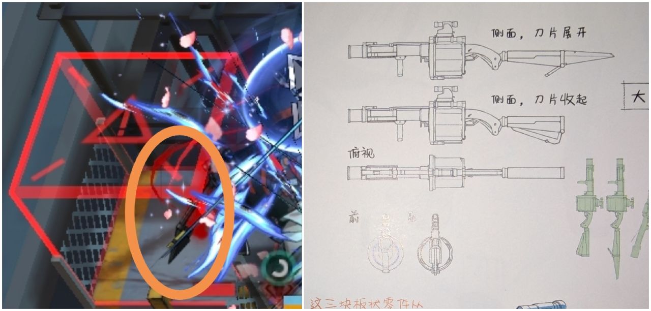 ②以前我們都以爲碎骨是隨身帶了小刀,直到番劇設定集出來,才知道原來是槍柄上有摺疊刀