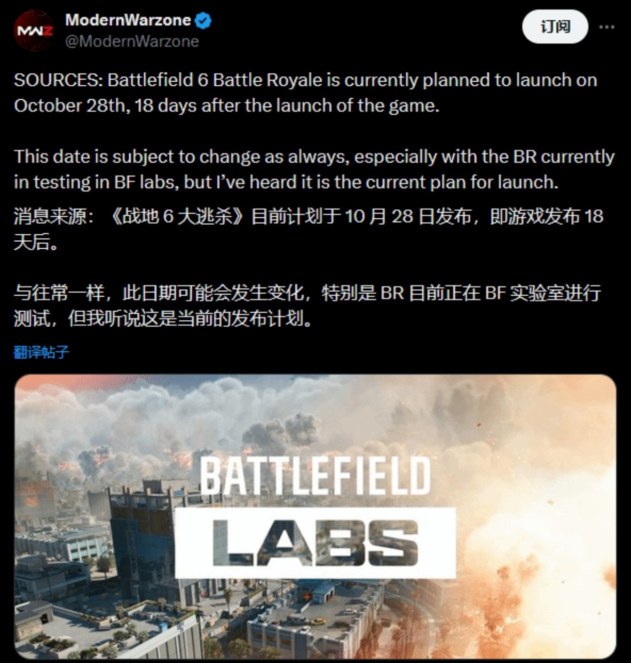 据多家外媒报道,《战地6》的独立大逃杀模式已确定将于2025年10月28日正式上线,这距离游戏本体10月10日的发售日期仅18天。该模式由Ripple Effect工作室(前DICE LA)主导开发,目前正处于“战地实验室”的最终测试与优化阶段。