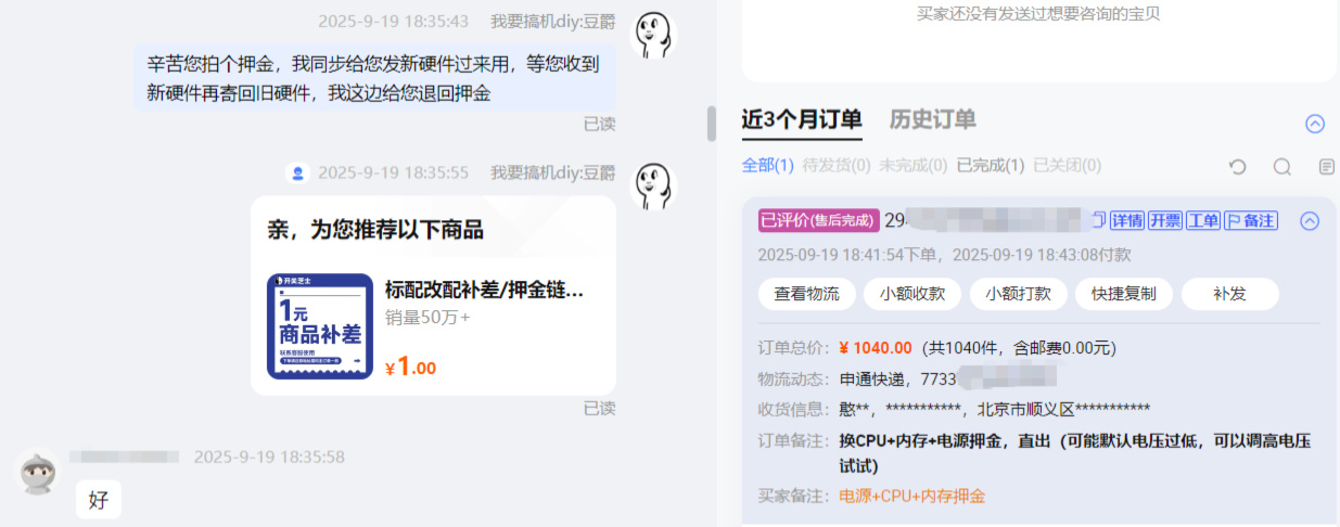 不论怎样,粉丝可以安心等待硬件换新/维修回来后,再寄回售后备件、我们退回押金,售后完成皆大欢喜!