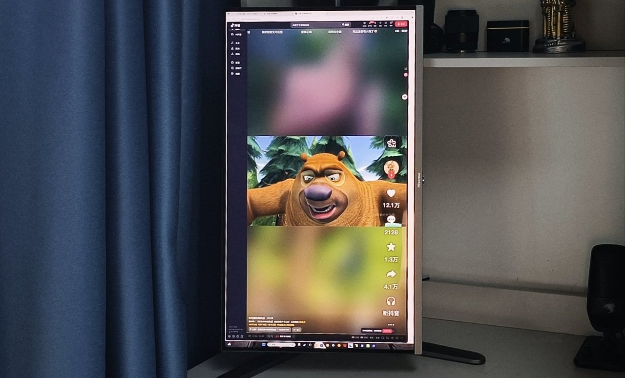 甚至你还可以垂直旋转90°,让他成为一个竖屏进行使用,日常办公或者当个副屏,体验都是挺好的,非常的方便