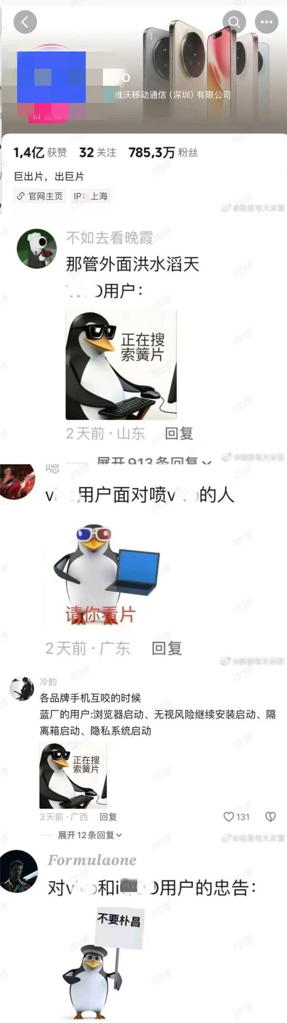 但对于某V字开头的蓝厂粉丝而言,这些吵闹不过只是无谓的喧嚣。粉丝不语,只是一味的在官方评论区发逆天企鹅表情包。