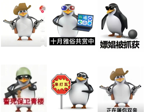 如果只看这个企鹅形象,不少人大概率都会觉得这些表情包或许是出自同样以抽象闻名的《马达加斯加的企鹅》。
