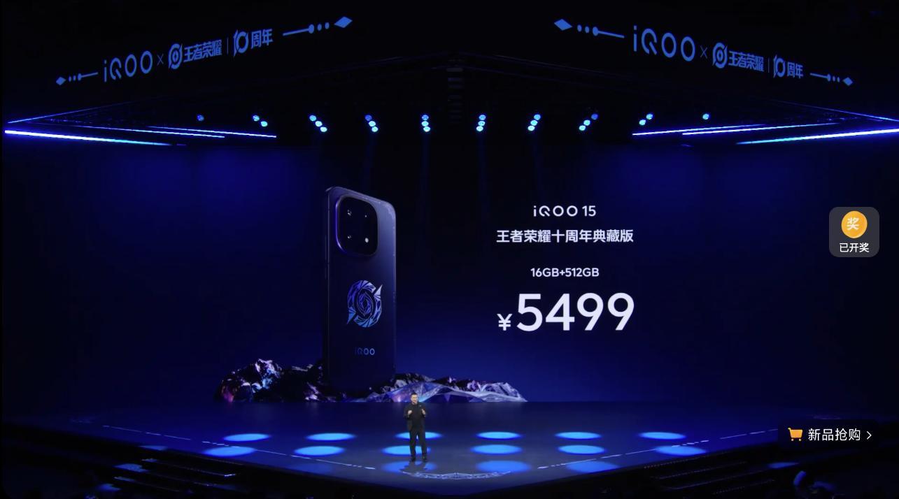 而iQOO 15王者荣耀十周年典藏版,16GB+512GB版本售价5499元。