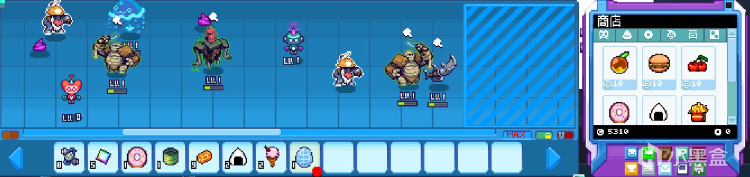 不同于其他桌面挂机游戏的是,《桌宠大乱斗》是用四个简单明了的区域框架构成的!一开始那个又像小掌机又像电子手表的机器画面是我们游戏总控,商店、任务栏、图鉴等等都分布在这上面。界面略小,需要我们自己根据习惯略微调整下。虽说图标也是标识得清清楚楚,但图标也略小,还是需要一定的时间摸索适应。好在功能就那么简单的几个,因此这几分钟摸索的学习成本,还是相当值得花费的。