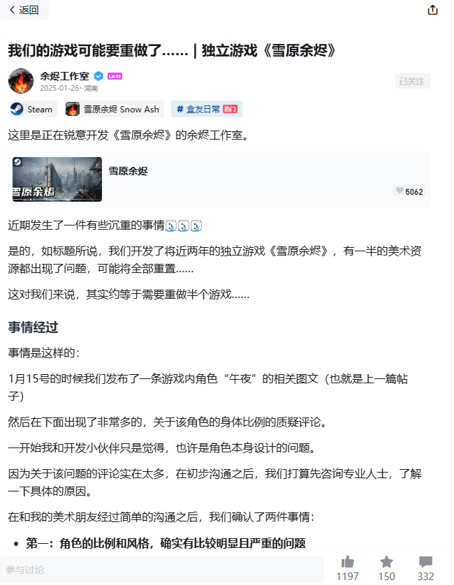 用AI画图,这并非开发者本意。年初收到自家画师的稿件后,经过反复审查,他们发现了AI改图痕迹。经过多次与画师三番五次的对质下,制作组最终决定更换画师,重新手绘一半的美术。