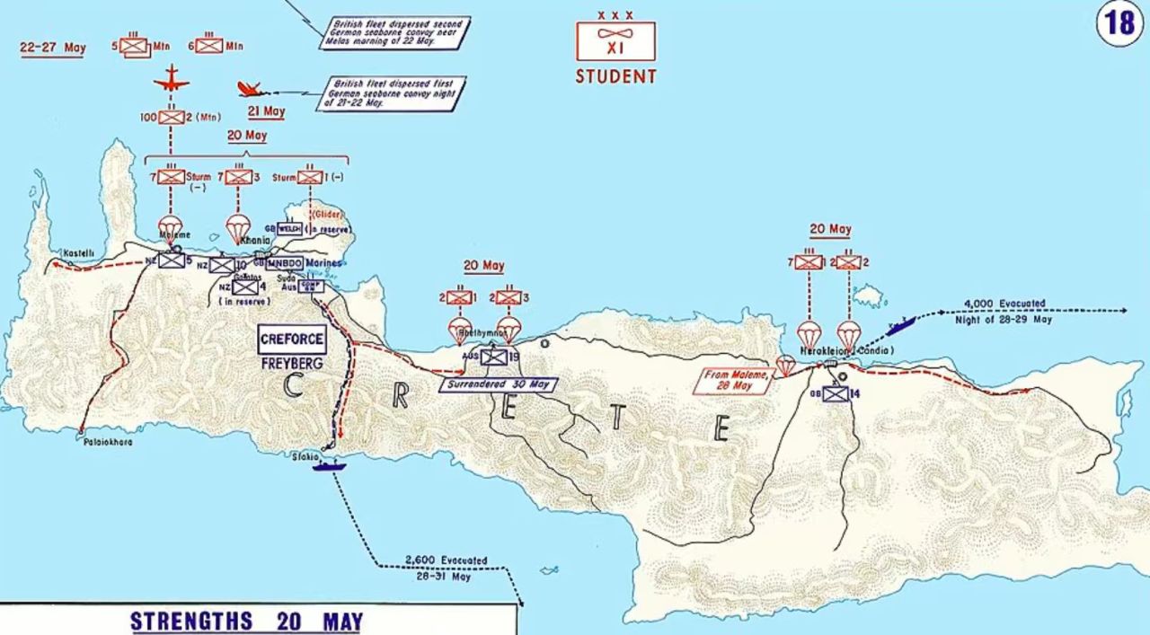 在强大的空中支援下,更多的伞兵最终成功占领了马莱迈机场——这是冲突的转折点,随后德国山地部队、轻型炮兵和摩托车部队得以稳定涌入(后者在穿越岛上城垛状地形的土路时非常有效),到6月1日,德军已成功完全控制该岛。
