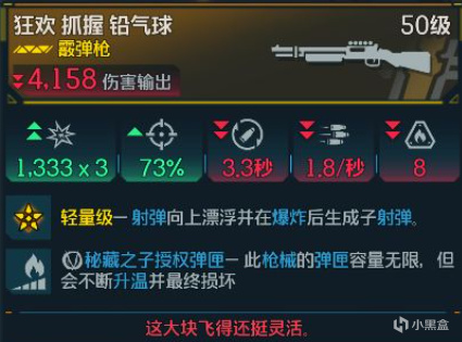 霰弹枪中伤害比较可观的武器,打出后会向上漂浮并爆炸打出多段伤害