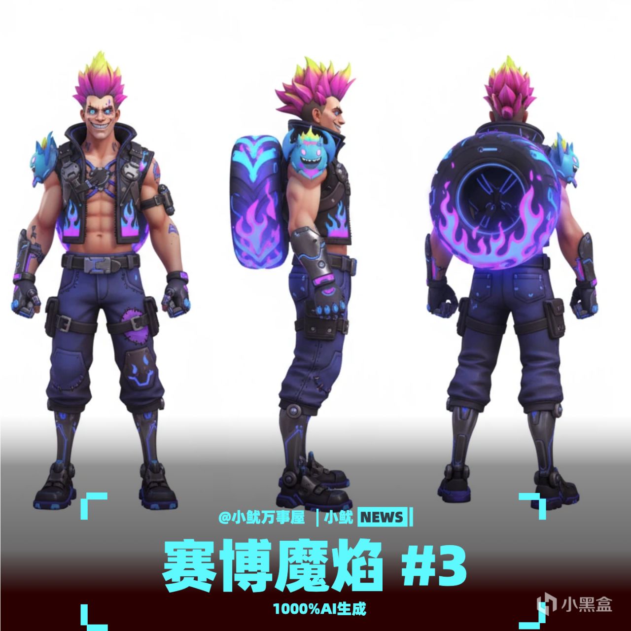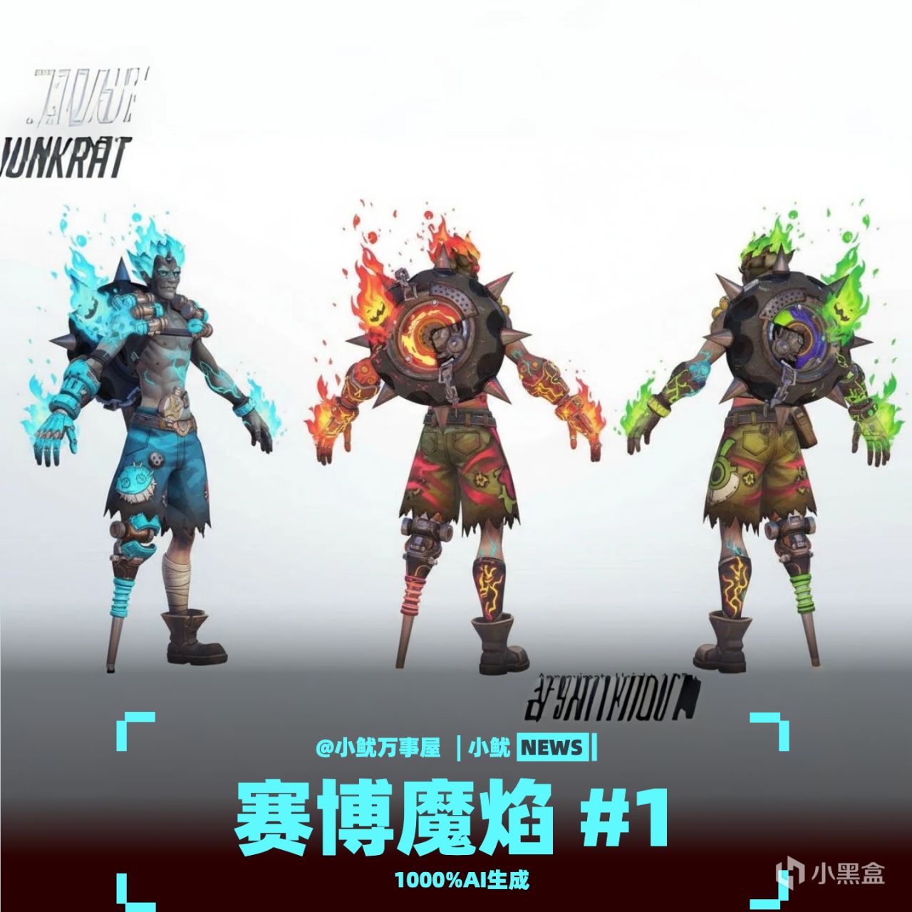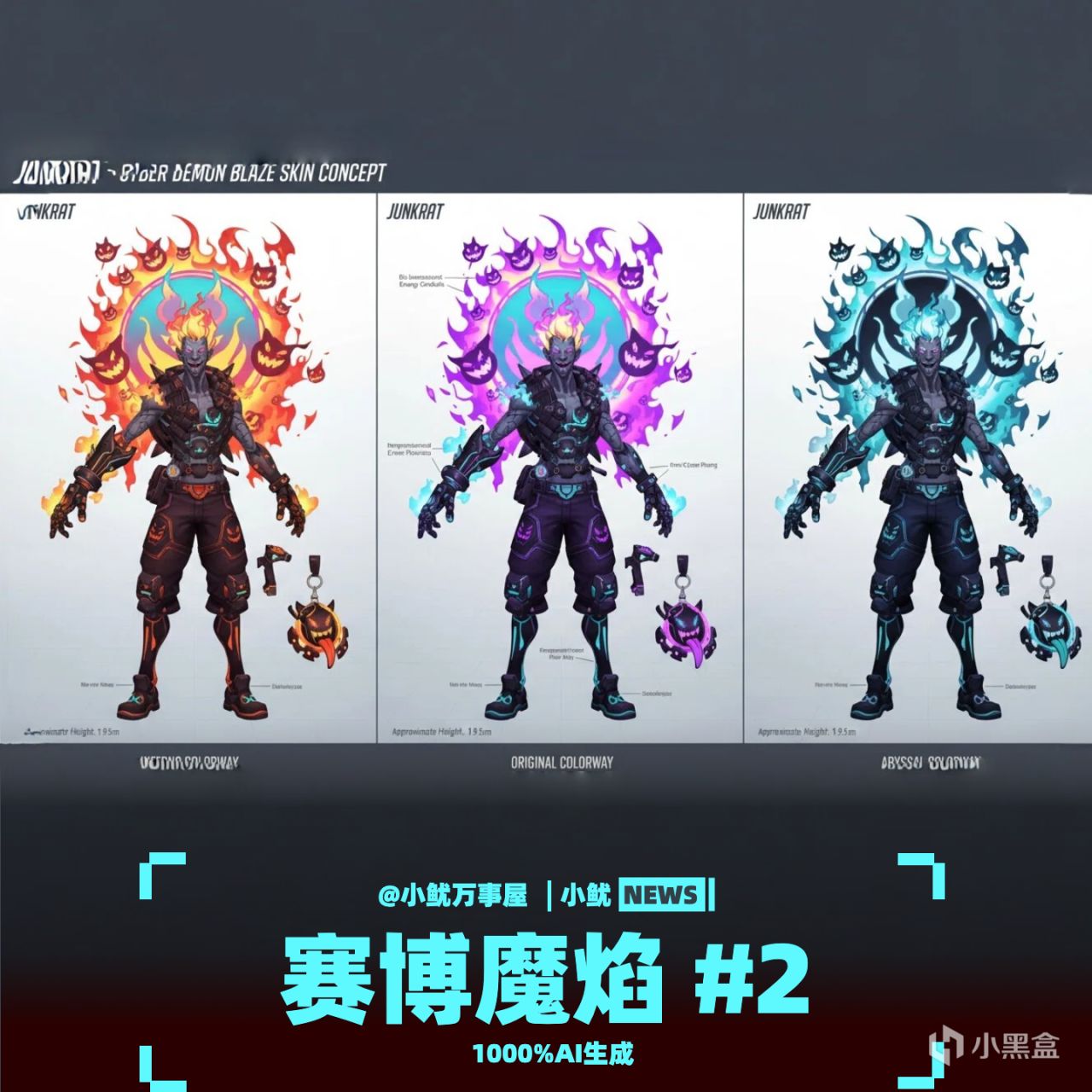 因为赛博魔焰皮肤要在季中上线,突发奇想,用已知线索,ai跑了100张图,从中选择了六张有代表性的与大家分享。