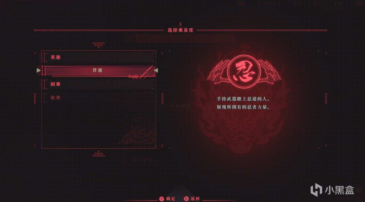 在打開遊戲之後,看到難度界面,想着哥們畢竟是初次接觸忍龍系列的新手,但是這個界面怎麼那麼奇怪呢?爲什麼普通難度夾雜在困難和英雄中間啊?不過出於穩健考慮,還是普通難度吧!哪怕最後打不過,可是爲了不犯錯而犯下的錯誤肯定不能算作是錯誤。 遊戲的難度是可以隨時切換的,每次死亡的時候,都會詢問你是否更換模式,如果多次選擇頭鐵不更換,則是會給你贈送一個回覆道具,除此之外,在每個章節結束的時候,結算菜單彈出也會有更換難度的標籤,這一點還是很不錯的。