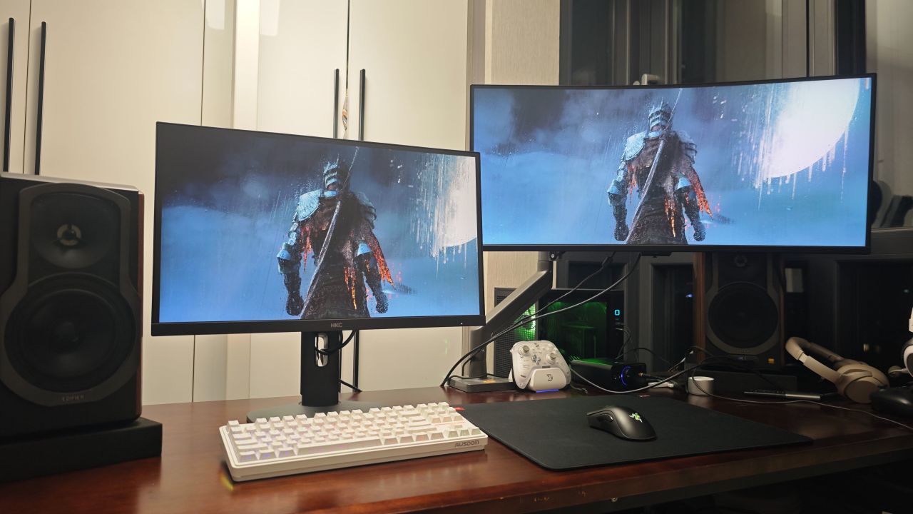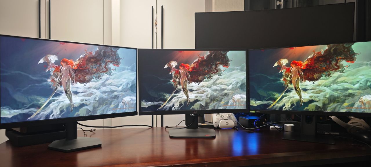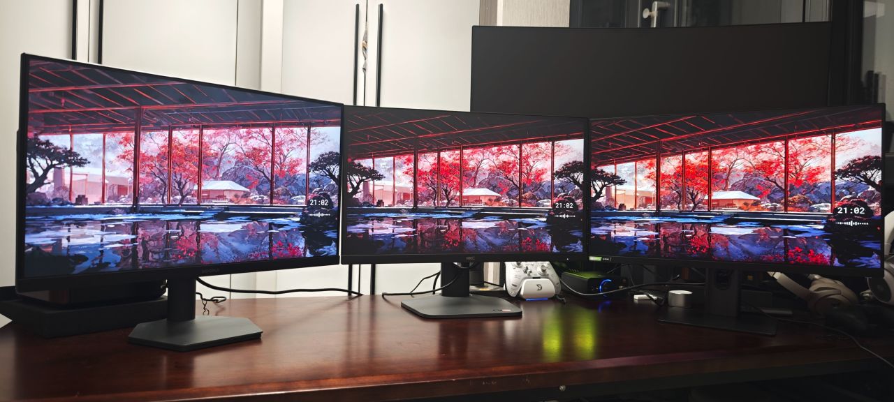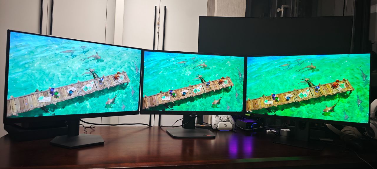 2、如果你还有更多3A和舒服办公需求且有余钱,可以再配一个34寸或者40寸以至于更大的4K中刷屏幕组双屏。