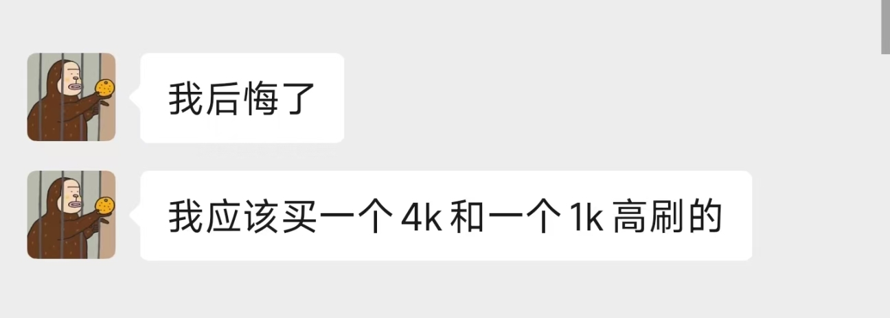 室友毕业上班之后攒了套9800X3D+5070Ti,屏幕选择上不听我劝,买了一个2K240Hz屏幕。现在已经后悔了,打FPS体验不能拉满,在响应速度、尺寸大小和帧数上太妥协。