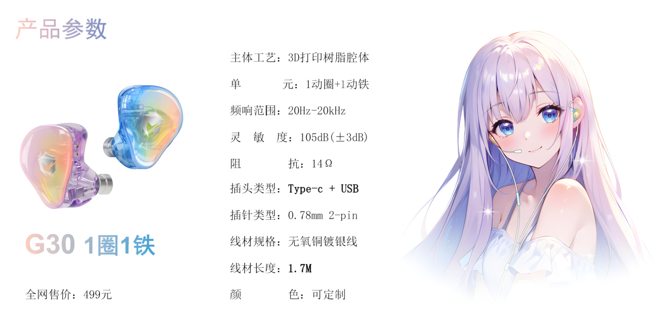 总的来说,EPZ G30是“游戏耳机+HIFI耳机+定制耳机”三合一,设计在线、功能全面,性价比很高。不管是喜欢定制外观的二次元、预算有限的学生党,还是既要打游戏又要听音乐的朋友,都适合这款。要是你想找一副颜值高、用着舒服、场景不挑的耳机,G30值得入手。