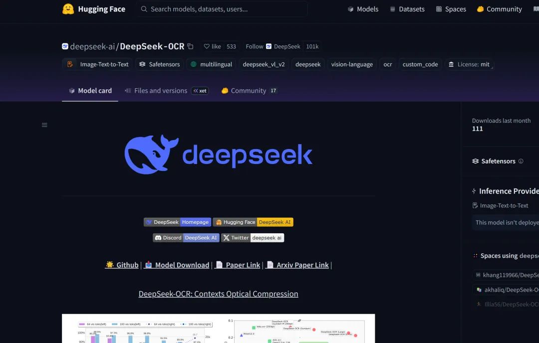 这次,不是语言模型,也不是图像模型(就没有),而是——DeepSeek-OCR模型。