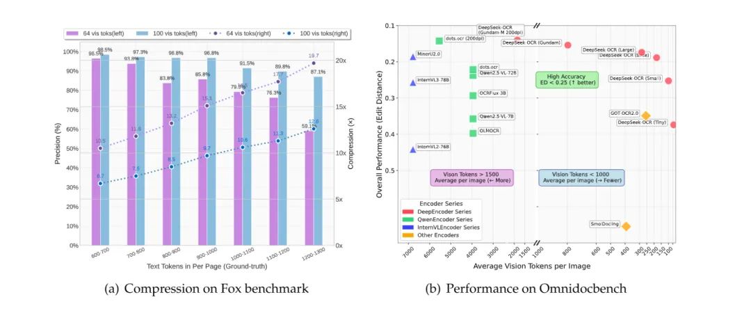 在官方展示的数据里,DeepSeek-OCR 在中英文混排、公式识别、票据结构化任务上,都比主流模型(包括 Gemini-Vision 和 GPT 等)快两倍以上,精度还更稳。