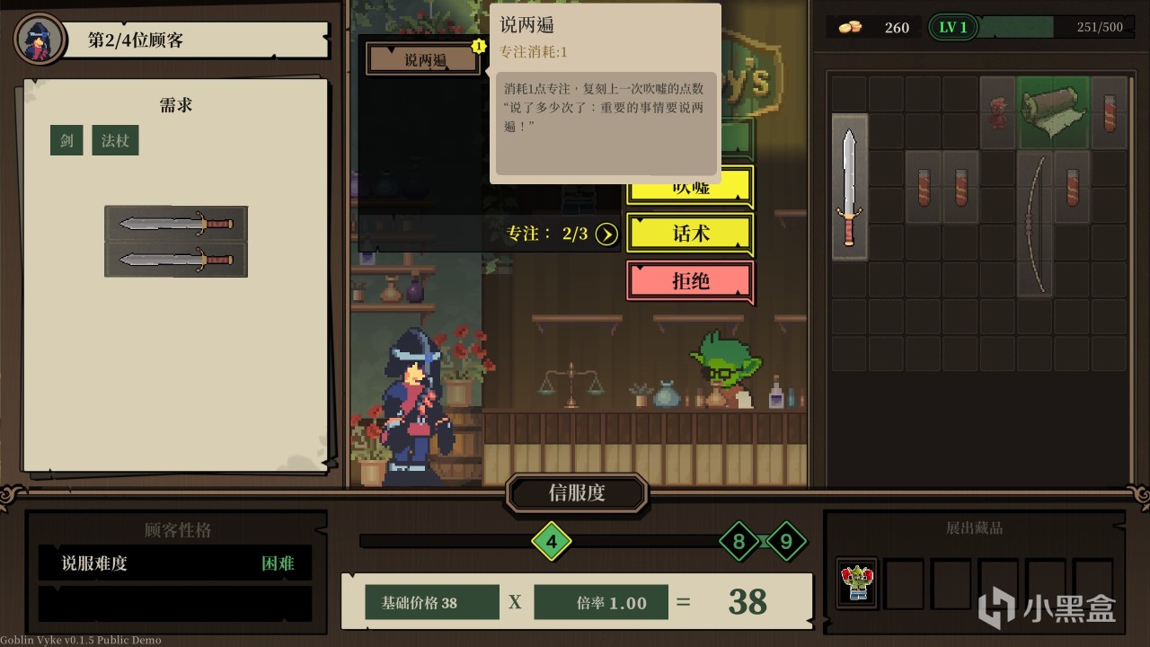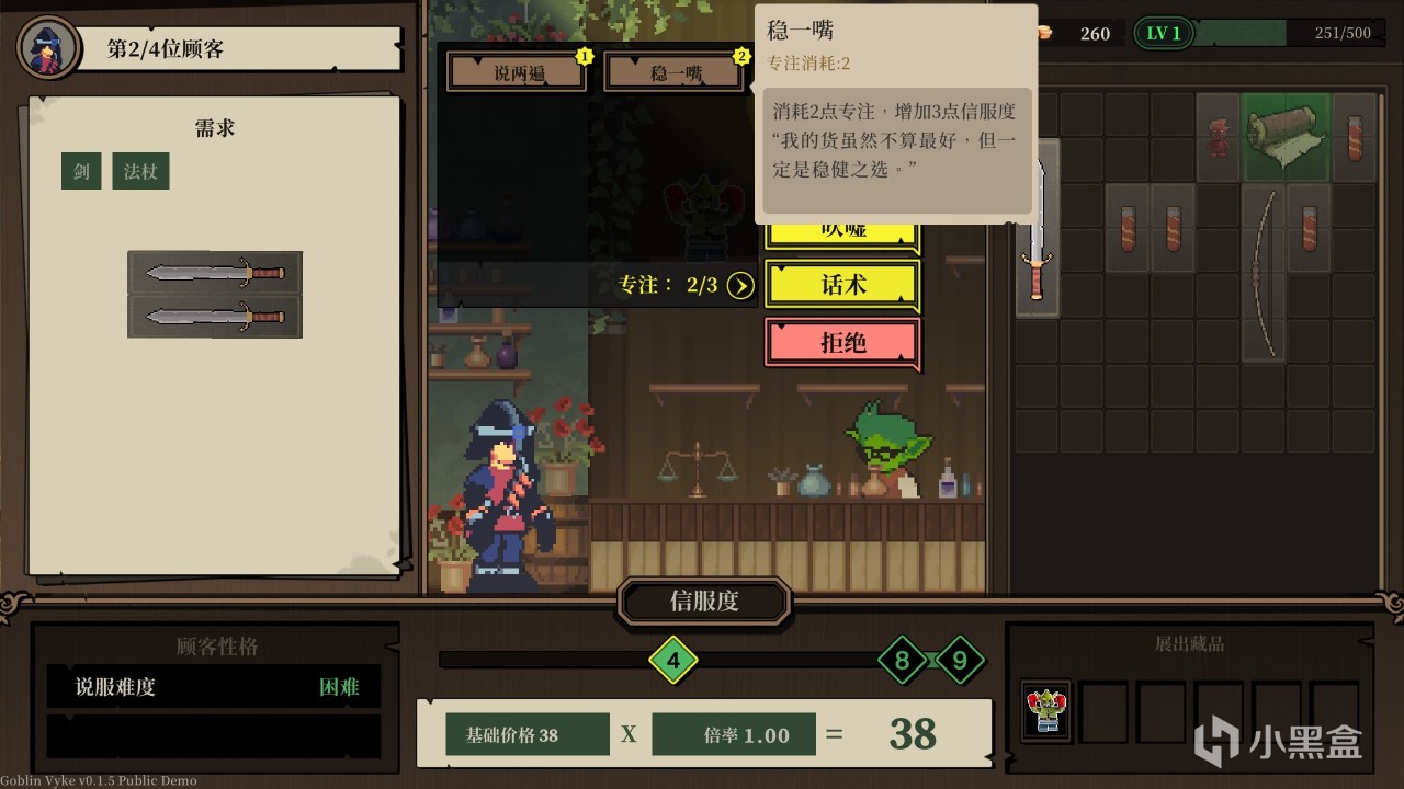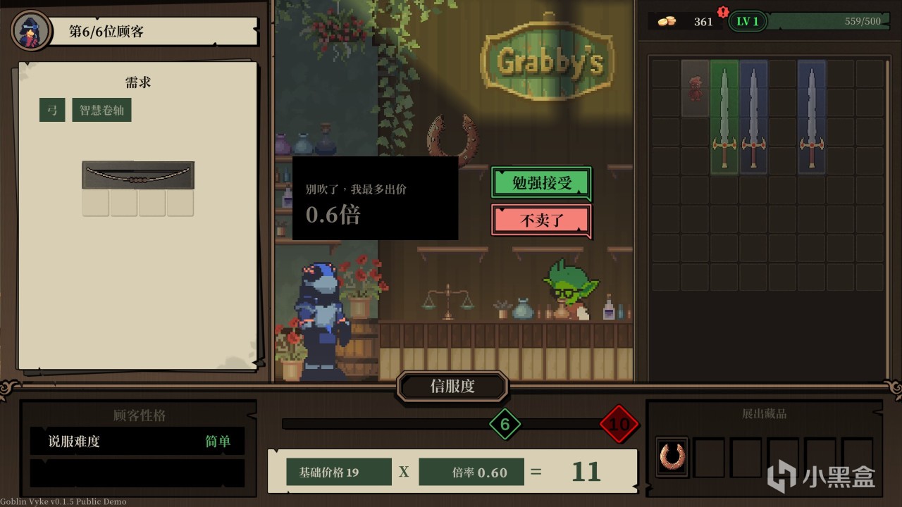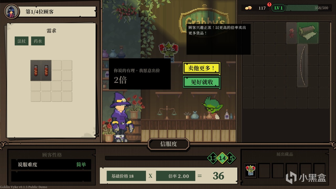 說是經營,其實更像是《小丑牌》這種賭徒遊戲一樣有意思,我們全靠擲骰子賣貨,正常來買東西我們可以靠吹噓賣出更高的價格