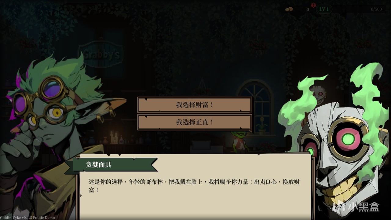 這時掛在店鋪的貪婪面具突然發話,指引着哥布林去地宮偷取寶物再回來賣錢,這時就是考驗我們是否正直的時候: