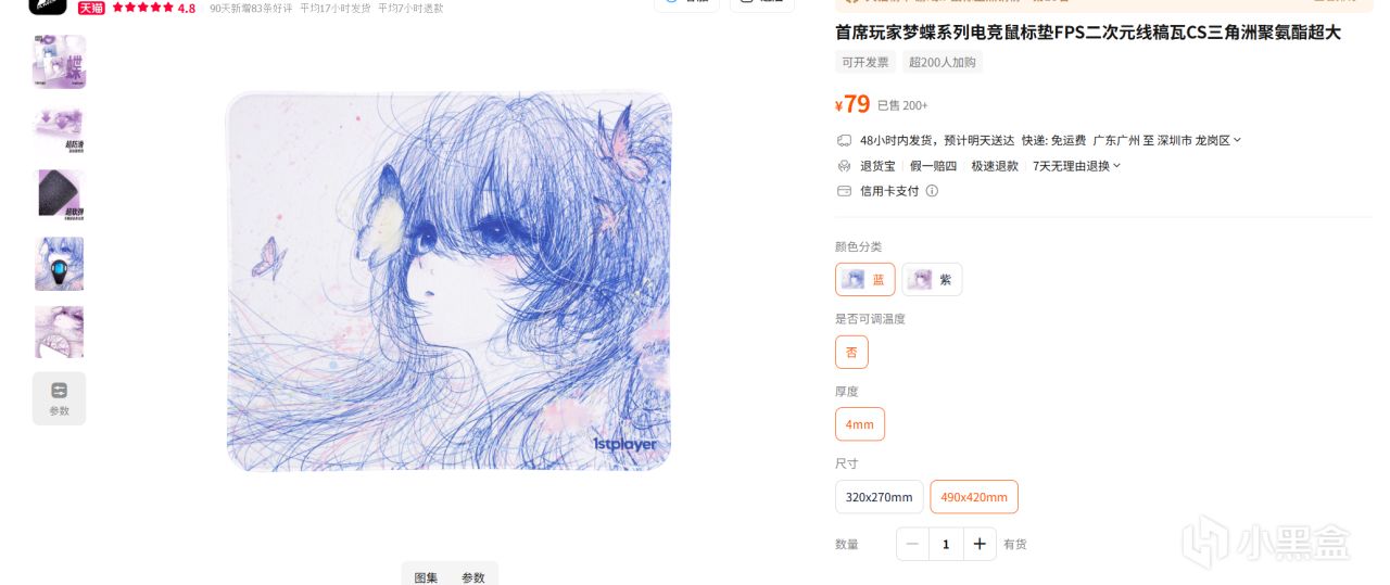 小號320x270mm是69塊 大號490x420mm是89塊這個品質這個價格 是合理的價位 一個二次元原創線稿+星閃底確實就得是這個價