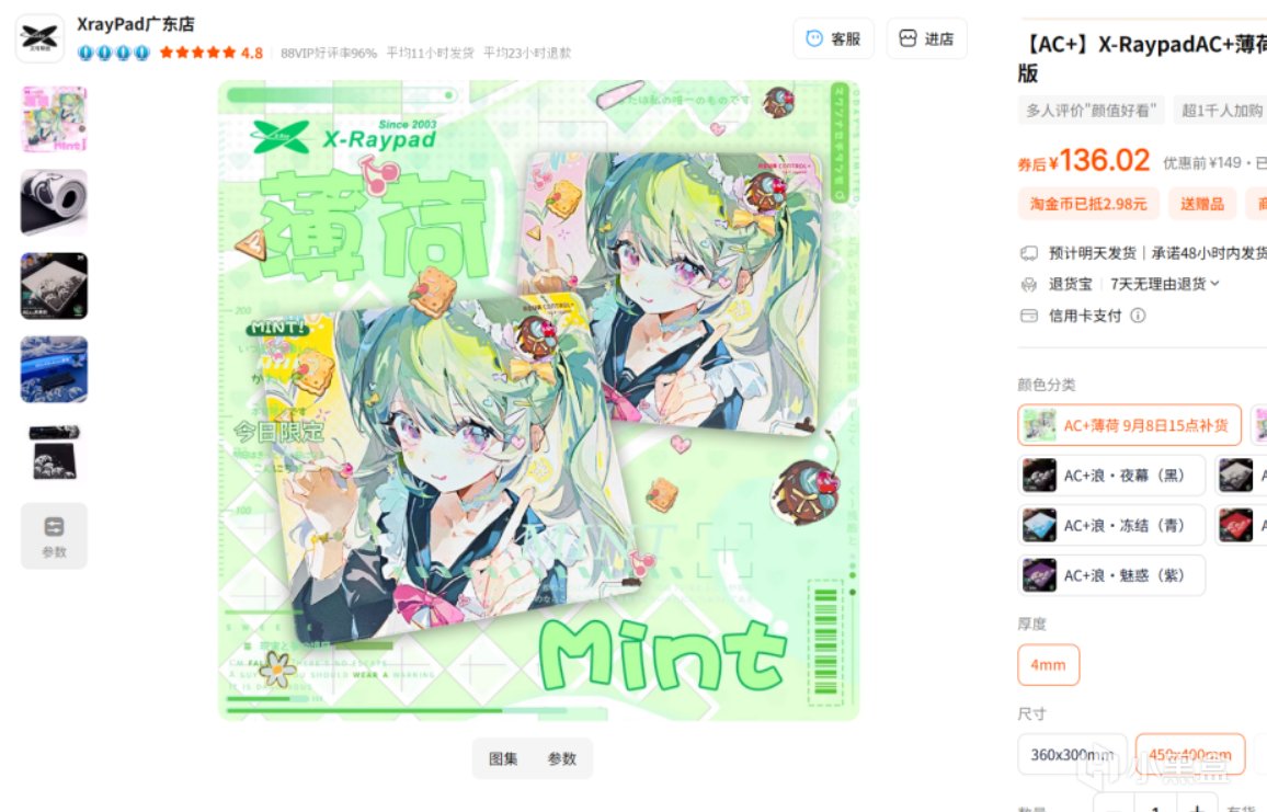 價格:有好幾個尺寸大小 360x300 99 490x420 169 500x500 199 對一般人來說490x420就夠用了,預算不夠可以選360x300的 360x300還有個1mm厚的超薄底膠版本可選 總體性價比很高