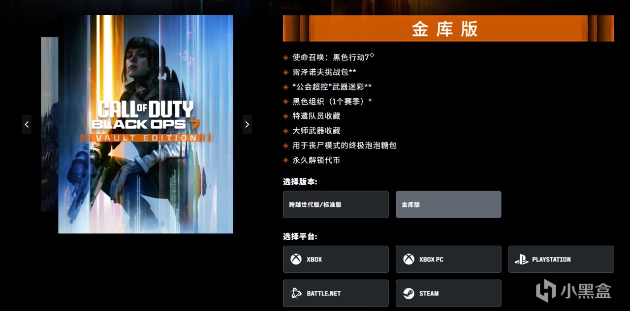 《使命召唤黑色行动7》支持多平台,有348标准版和548金库版可供预购,并均有预购奖励。