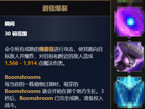 藤蔓作为我们主要输出核心里面必不可缺的一环,基础的运用就是直接召唤在场地上面作为一个自动寻敌的炮台使用,并且在使用枯萎之后还能够为我们生成核心爆炸输出的蘑菇小人,是我们最快积累蘑菇的一个重要手段