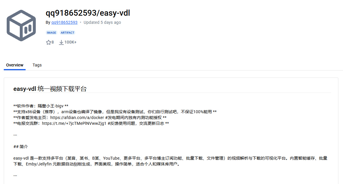 而这些内容虽说可以缓存或者保存下来,但在NAS的影视库里,没有标题、封面以及简介等信息,多少还是有点不美观了,于是我发现了这样一个项目,它能将B站、油管、短视频平台甚至于某书和推于tiktok的内容保存下来,同时还支持自动生成nfo文件,刮削视频的简介、封面以及标题,今天要介绍的项目就是Easy-VDL。