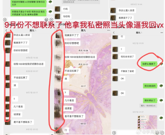 李某某的表述中,除了渣男脚踏多条船分分合合的狗血事件以外,还有男方动手打人+拿人父母威胁+把女方说成精神有问题的极端私生粉。